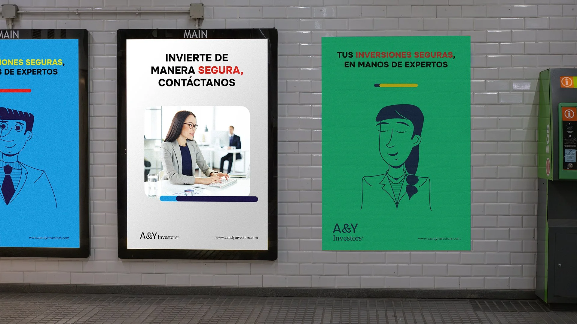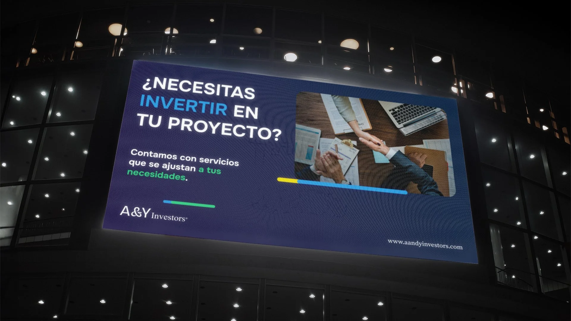 A&Y Investors es una empresa de inversiones y financiamientos para emprendedores y grandes empresas fundada en Queretaro, México. Con más de 7 años en el mercado de la economía, A&Y Investors busca diferenciarse entre su competencia por el alto valor estético de su nueva identidad de marca, así como de la calidad, relación y servicio al cliente, que los ha caracterizado durante toda su trayectoria.